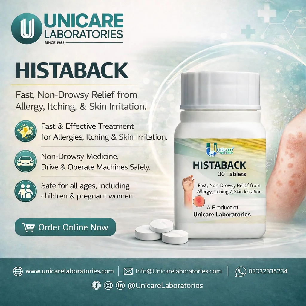 Histaback is a trusted anti-allergy and anti-itch medicine that works quickly to relieve symptoms of itching, skin allergies, and hives (urticaria). Made by Unicare Laboratories, this formula is free from harmful side effects and can be used safely by people of all ages, including children, elderly individuals, and pregnant women.